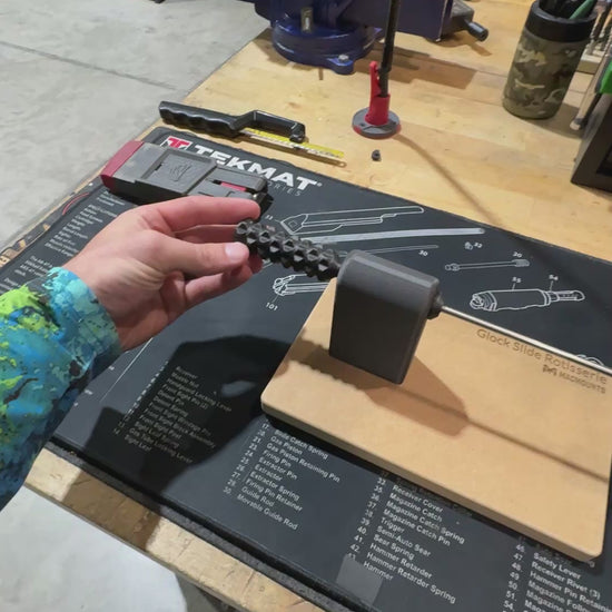 The Glock Slide Rotisserie is designed to provide complete, even coverage when applying finishes to your Glock slide. Its precise rotation mechanism allows for 360-degree spraying, ensuring no areas are missed or unevenly coated. This tool enhances the quality of your finish by promoting consistency and professional results, making it ideal for gunsmiths and enthusiasts seeking expert-level refinishing. Durable and easy to use, it supports efficient workflow and reduces the risk of touch-ups or imperfections. Elevate your slide finishing process with reliable, comprehensive spray access using this specialized rotisserie.